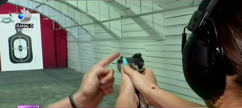 Alexia Eram a învățat să tragă cu arma în poligon!