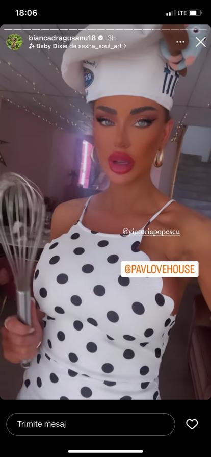 „Pur și simplu am obosit. Numai când am auzit câte ingrediente trebuie să pun în această rețetă și m-am decis că eu nu sunt făcută pentru așa ceva și, cu toate regretele mele, Vica îți spun că te iubesc, dar prefer să mă retrag, deși știu că aș putea să fac carieră excelentă în bucătărie și că aș putea să fiu un chef extra mega fantastic, dar nu, nu, nu, lăsați că nu. Deci numai când am auzit câte ingrediente trebuie să pui la o Plavova și câtă răbdare îți trebuie... Mi-e foame, totuși, Vica...”, a mai spus, resemnată, Bianca Drăgușanu, în mediul olnine.