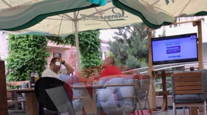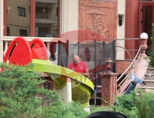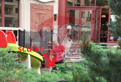 Recent, el a fost surprins intr-o zona de fite din Capitala. Artistul si-a parcat scuterul, si-a dat jos casca, si s-a dus tinta la terasa unde il astepta un prieten cu care avea probabil intalnire.
