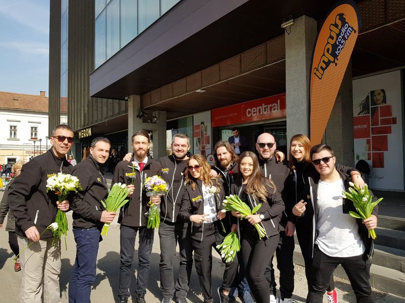 Băieţii de la Uzina de Dume, Mişu şi Ştefan, dar şi toţi ceilalţi membri ai echipei Impuls au început să împartă, de la ora 12, flori, cafea si, bineînţeles, multă voie bună „impulsionistelor” care au trecut prin faţa magazinului Central Shopping Center din Cluj-Napoca.