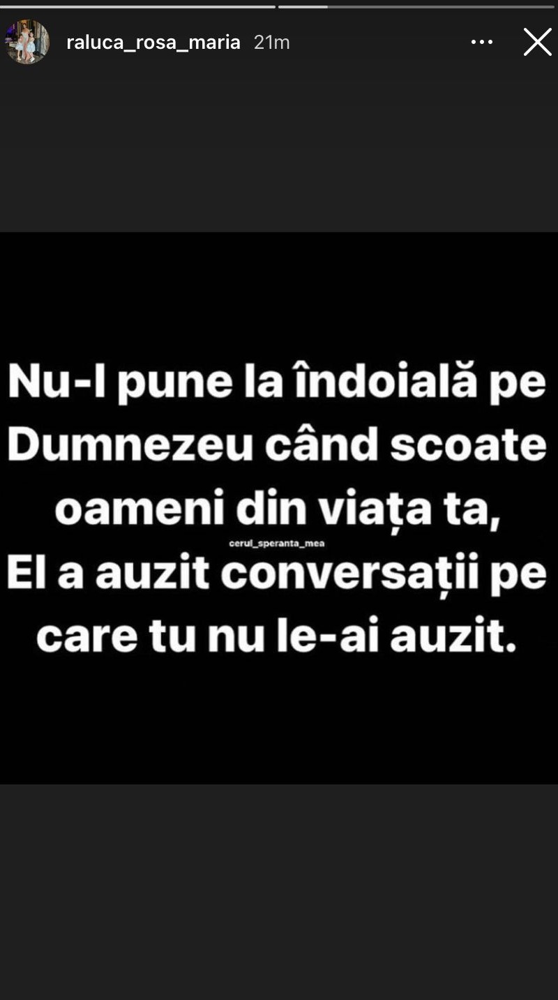 Mai exact, Raluca Pastramă a dat de înțeles în mediul online că o persoană a ieșit din viața sa, iar admiratorii săi s-au gândit imediat că ar fi vorba despre Ibrahim. Fără să ofere mai multe detalii, fosta soție a lui Pepe a sugerat că este dispusă să accepte orice situație care îi apare în cale și să nu pună la îndoială socotelile lui Dumnezeu.