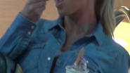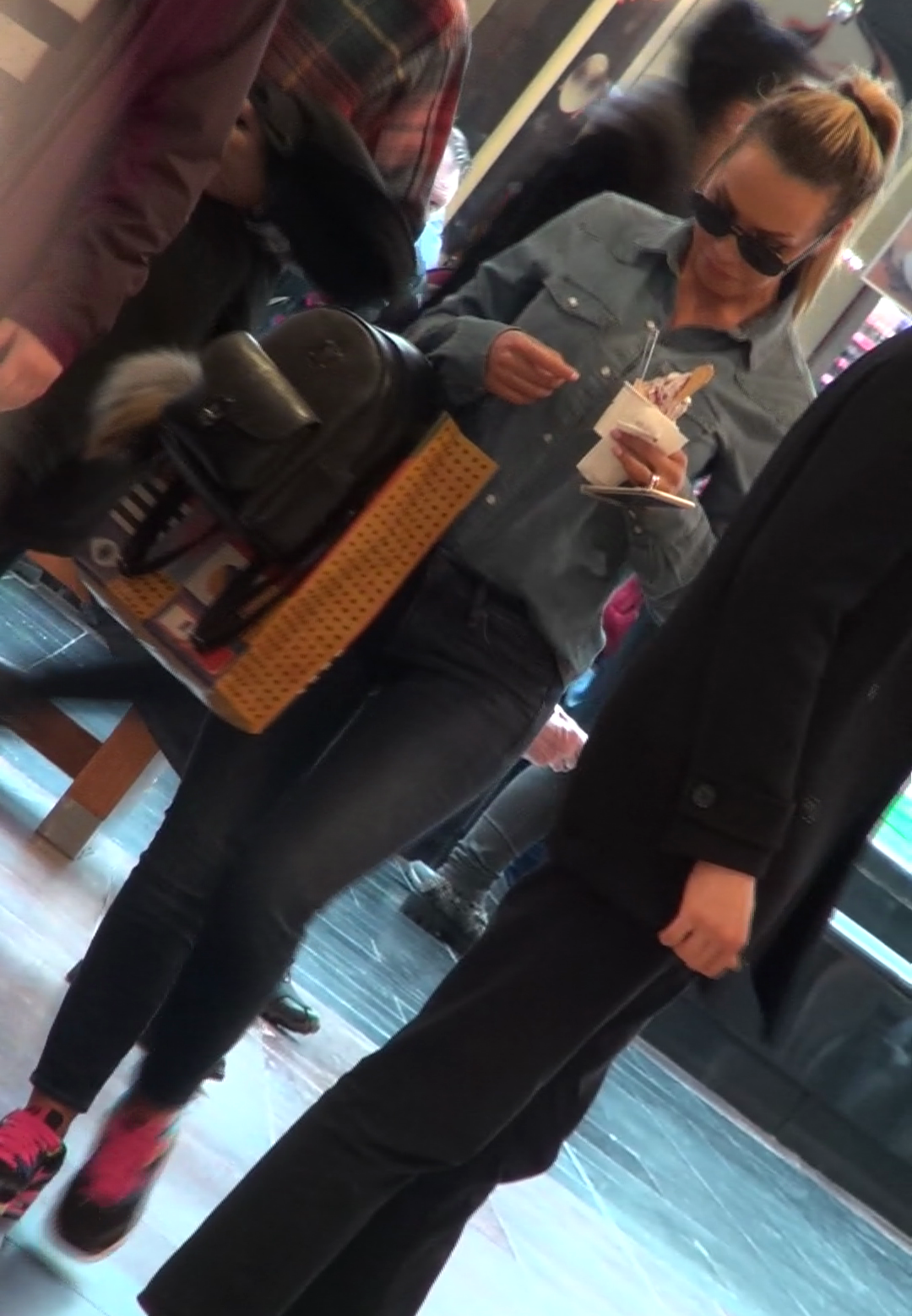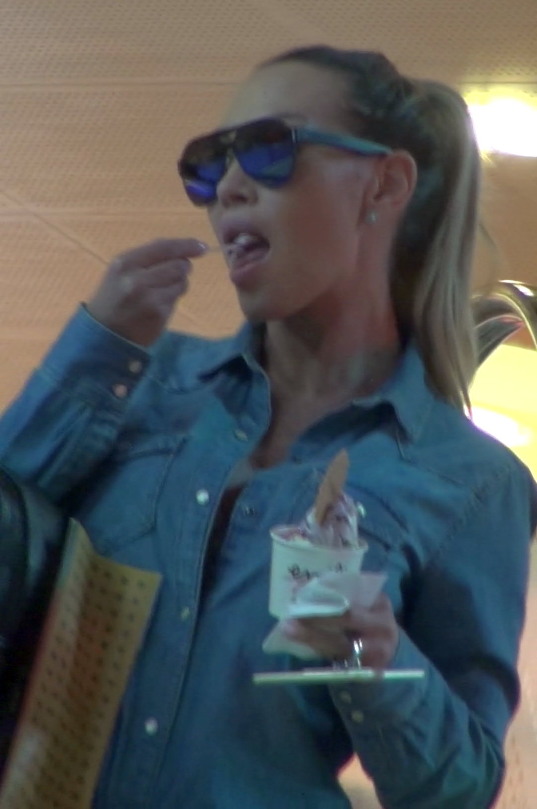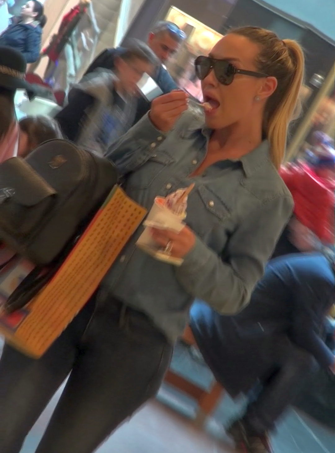 Raluca a inceput sa linga provocator desertul racoros, iar miscarea ei a infierbantat atmosfera si asa destul de calduroasa la propriu, din respectivul centru comercial bucurestean.