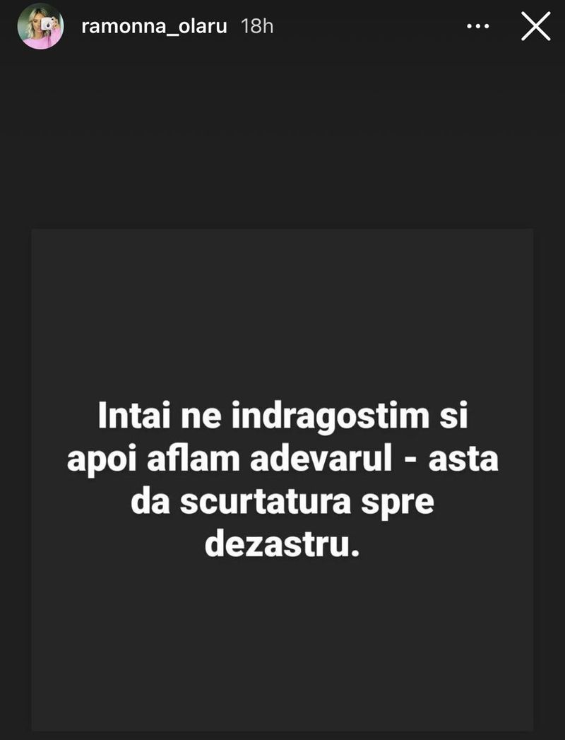În urmă cu câteva ore, blondina a distribuit un mesaj total neașteptat la InstaStory, iar unii dintre internauți se gândesc dacă nu cumva este, de fapt, un mesaj cu subînțeles adresat chiar iubitului ei: „Întâi ne îndrăgostim și apoi aflăm adevărul- asta da scurtătură spre dezastru”, se arată în postarea asistentei TV.