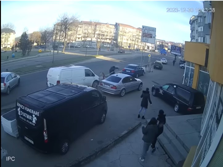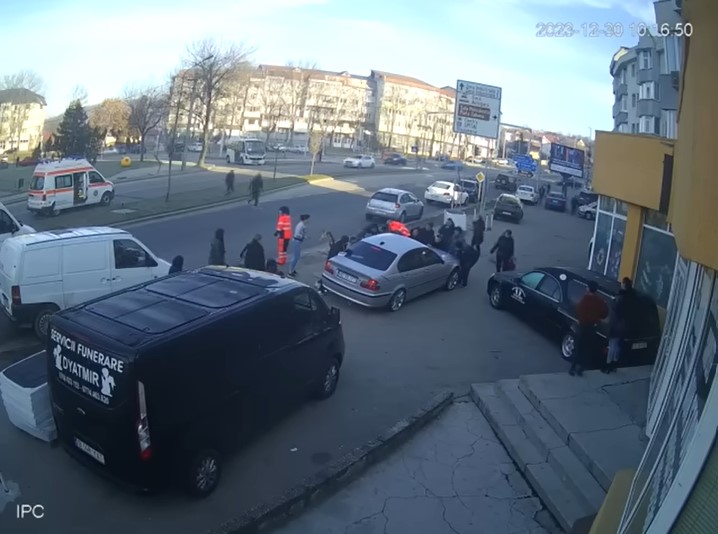 Unul dintre bărbați se afla la volanul mașinii sale și, într-un moment de nervozitate, l-a călcat cu autovehiculul pe individul cu care se certa. Victima a ajuns sub roțile mașinii, sub privirile înghețate ale martorilor. Bărbatul a fost târât cel puțin 10 metri pe trotuar, iar după ce mașina s-a oprit, oamenii din jur au sărit imediat pentru a-l ajuta, ridicând vehiculul și reușind să îl scape cu viață.