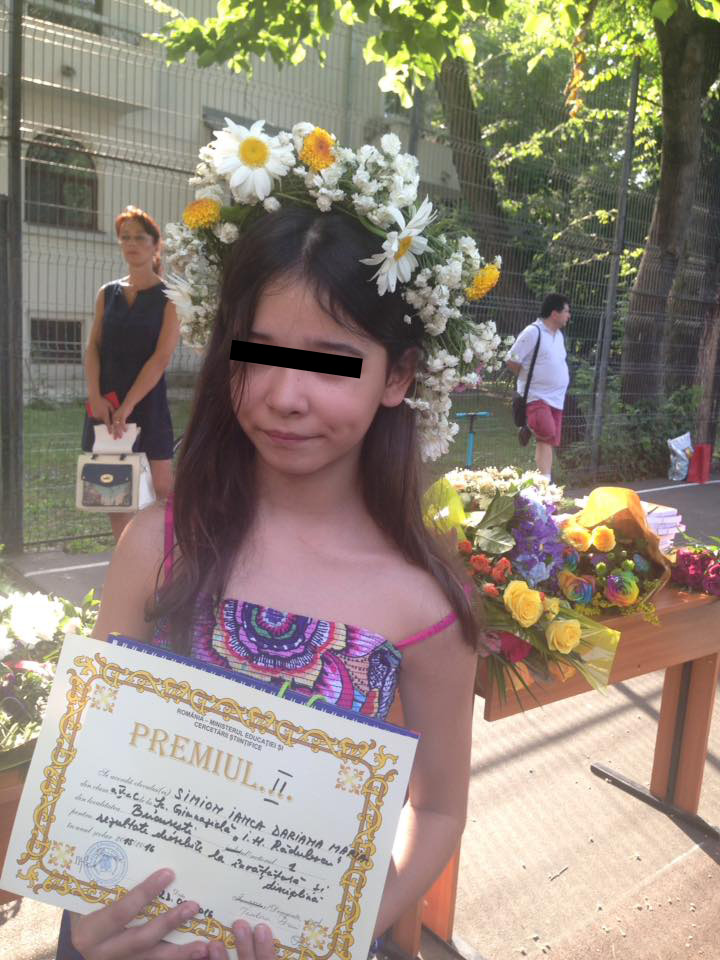 Simpatica fetita a terminat clasa a cincea cu o media foarte buna si a obtinut premiul al doilea. La festivitatea de premiere atat mama cat si tatal micutei au avut emotii cand au vazut-o cu coronita si cu diploma in maini.