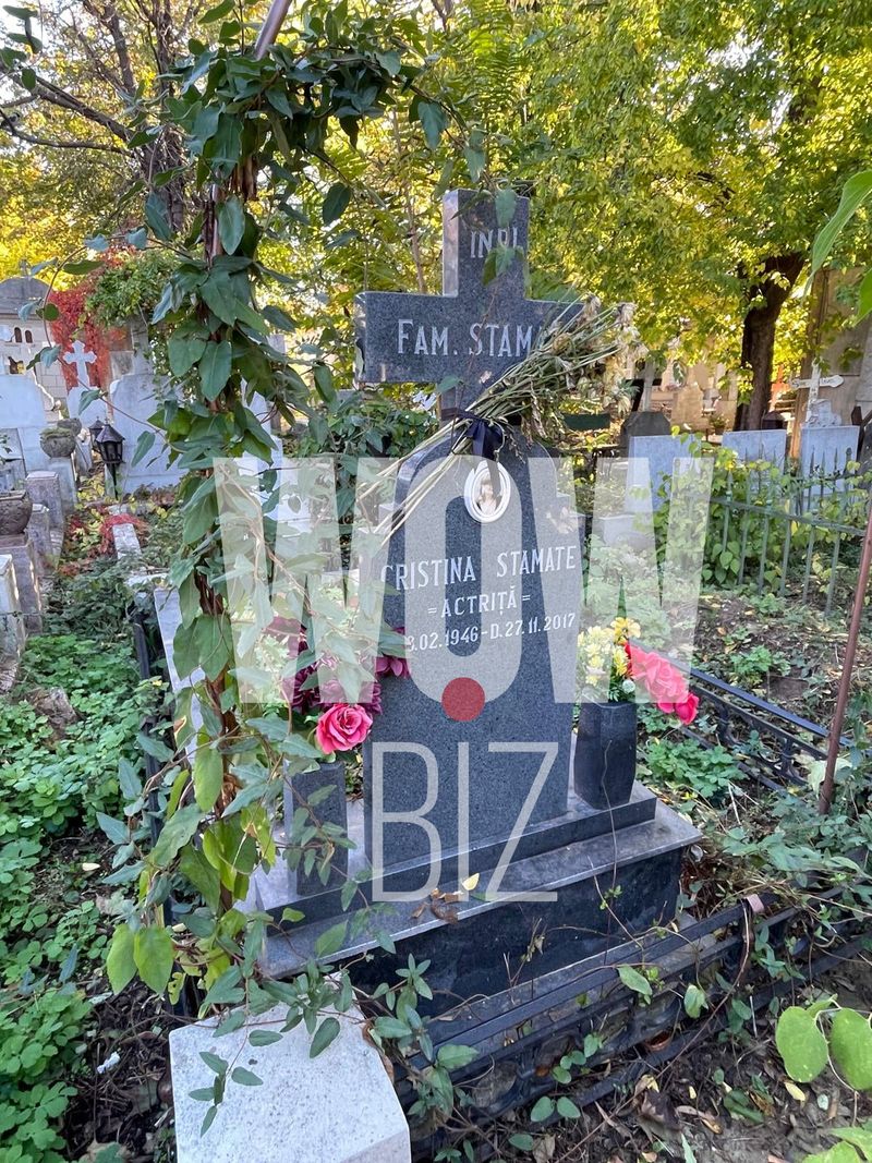 Crucea de piatră a Cristinei Stamate, marea actriță a Teatrului de Revistă „Constantin Tănase”, e înconjurată de frunze uscate, iar vechea cruce de lemn a fost lăsată pe pământul care acoperă mormântul.