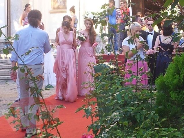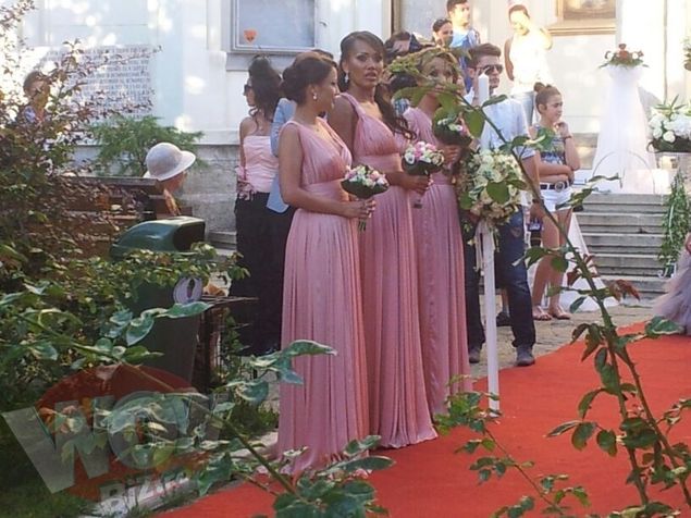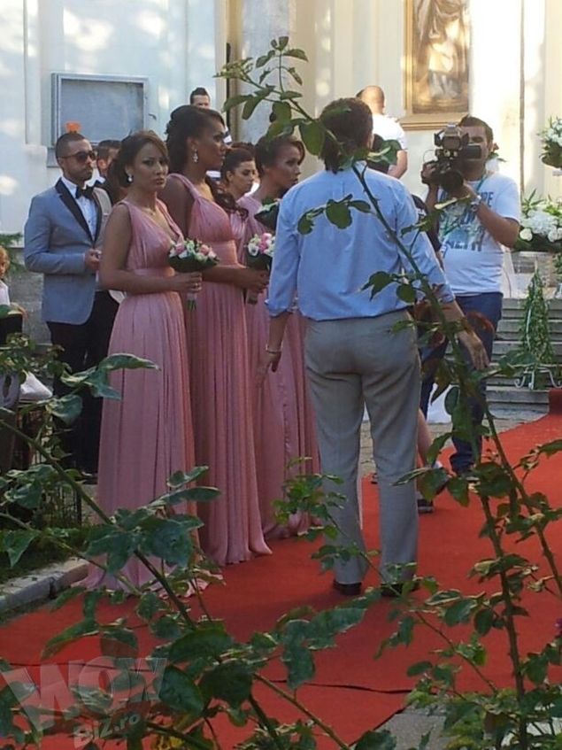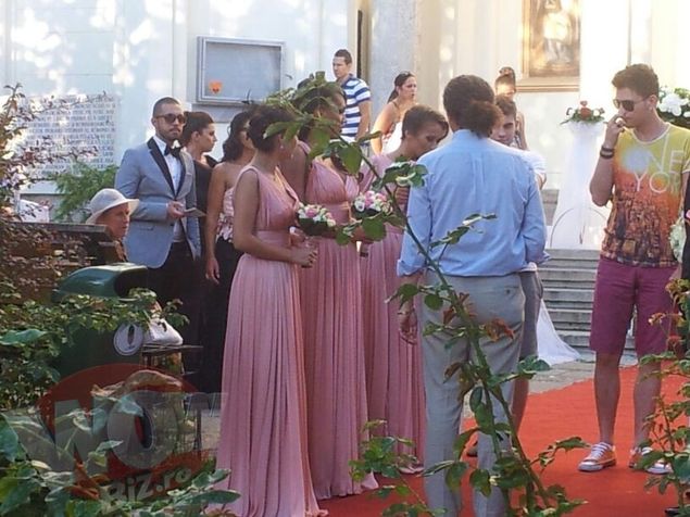 Domnisoarele de onoare au fost si ele admirate. Prietenele Ralucai au purtat rochii roz, identice. Cavalerii de onoare au atras si ei atentia. In costume negre si cu ochelari de soare inchisi la culoare, barbatii au facut o poza de grup.