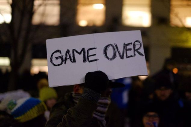 Dupa ora 22.00, un grup de ultrasi a ajuns in Piata Victoriei si a inceput sa agite spiritele. Au fost intai huiduieli, fuieraturi si cateva pocnitori. Apoi, s-a trecut la violente. Lucrurile au luat amploare atunci cand s-au aruncat cu pietre, fumigene si cocktailuri Molotov, spre jandarmi, care au ripostat cu gaze lacrimogene si retinerea mai multor cetateni.