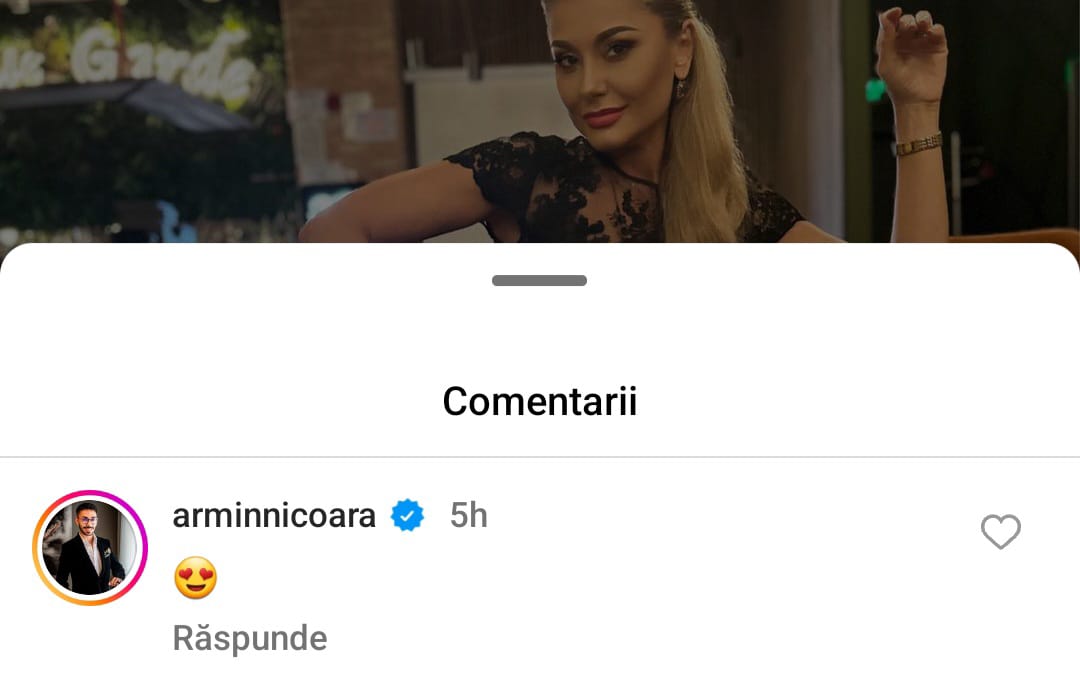 Dovada o reprezintă chiar ultima ei postare din mediul online, care a adunat o mulțime de mesaje și aprecieri. Blondina s-a fotografiat în mai multe ținute, printre care și într-o rochie neagră, destul de scurtă, care i-a scos foarte mult în evidență picioarele. Printre comentarii am zărit și reacția unui alt artist foarte cunoscut, și anume a lui Armin Nicoară. Bărbatul nu s-a putut abține când a văzut ce poze a postat colega lui de breaslă, așa că i-a transmis și el un mesaj public.