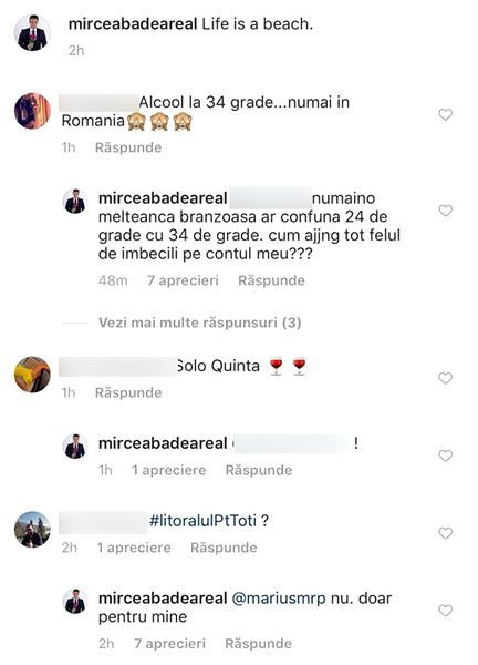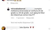 Mircea Badea l-a taxat imediat si a lasat urmatorul comentariu: "Numai o melteancă brânzoasă ar confunda 24 de grade cu 34 de grade. Cum ajung tot felul de imbecili pe contul meu?