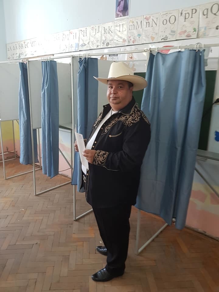 La o secţie din Sibiu, Regele Cioabă a votat la referendum cu pălărie de cowboy. Şeful rromilor de pretutindeni a revenit recent dintr-o vizită efectuată în SUA, acolo unde a primit cadou o pălărie texană pe care a afişat-o la prima ieşire în public. (vezi ce gest obscen a făcut în baie nepoata lui Cioabă)