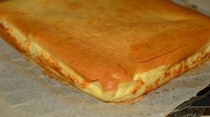 Pachetul de unt se amestecă cu cele 12 gălbenușuri, se adaugă apoi zaharul, brânza de vaci, vanilia și făina. Compoziția trebuie amestecată bine. Se adaugă ulterior praful de copt, amestecat cu zeama de lamaie și albușurile bine bătute până s-au făcut spuma. La final, adăugăm în compoziție stafidele si coaja rasă de la cele două portocale.