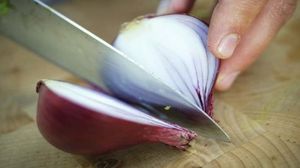 Taie pe jumatate o ceapa rosie, astfel incat sa poti obtine suc de la ambele jumatati. Folosind cele doua bucati, maseaza-ti gatul in zona glandei tiroide, cu miscari circulare usoare. Mergi la somn fara sa speli sucul de ceapa de pe gat.