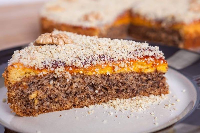Mod de preparare: Se bat albușurile spumă în care se adaugă 100 g zahăr. Se bat în continuare până se topește zaharul. Se adaugă macul și nuca de cocos. Se presară 2 linguri de faină și se amesteca până se omogenizează compoziția.
