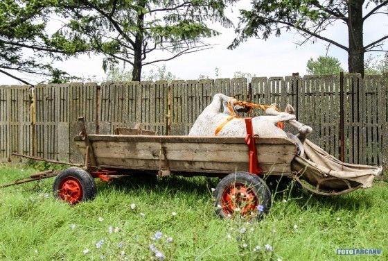 Un cal mort de cateva zile a fost legat si lasat sa putrezeasca intr-o caruta, in fata unei porti de la iesirea din Giurgiu, la capatul soselei Ghizdarului.