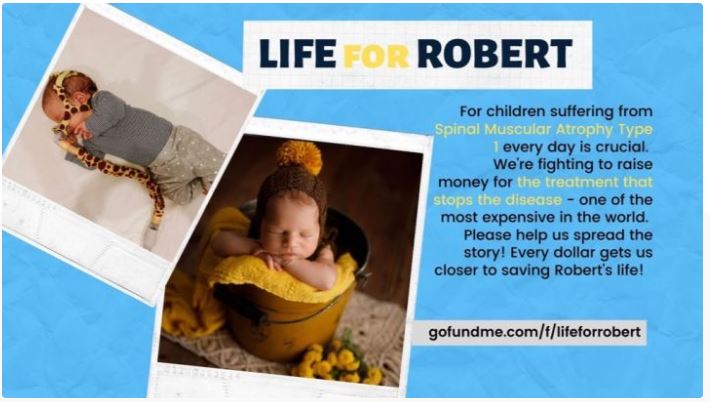 Robert, un bebeluș din Republica Moldova, a fost diagnosticat când avea doar o lună și trei săptămâni cu amiotrofie spinală tip 1, o boală genetică moștenită de la părinți, care sunt doar purtători. Boala este extrem de agresivă, mai exact, neuronii spinali ”mor” și nu se mai refac, din cauza lipsei unei proteine care-i hrănește. Degradarea organismului, în special a mușchilor, este una rapidă și oricând se poate produce un stop cardiorespirator. Însă, medicii din SUA au găsit leacul pentru această boală, este vorba despre un vaccin care se află pe piața medicală de puțin timp, însă prețul este unul greu și de rostit pentru părinții unui copilaș cu o astfel de boală: 2.125.000 de dolari!