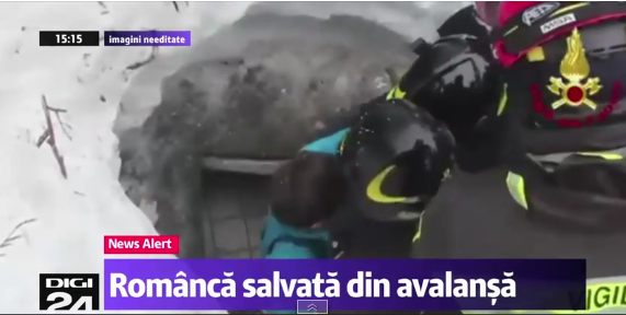 Romanca prinsa sub avalansa intr-un hotel din Pescara, Italia a fost gasit in viata. Femeia si baietelul ei au fost scosi de sub nameti. Din pacate nu se stie nimic despre fetita, insa echipele de salvare continua cautarile. (vezi si: O romanca si cei doi copii ai ei, disparuti in urma avalansei din Italia!)