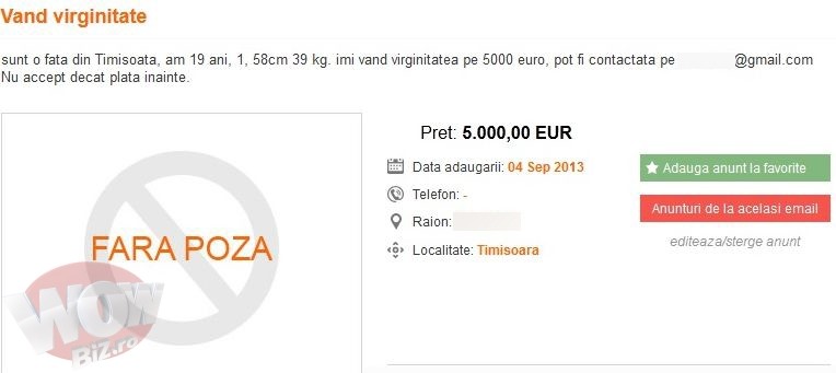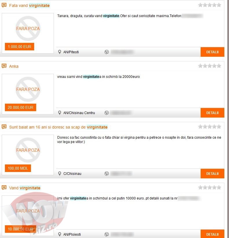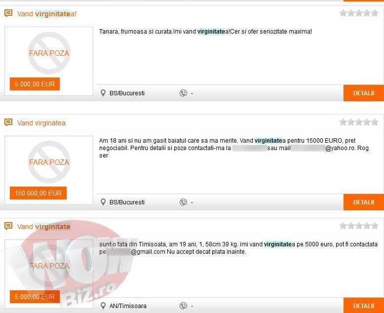 Romancele isi vand virginitatea pe internet cu sume cuprinse intre 1.000 si 20.000 de euro! Disperate dupa bani, unele tinere se umilesc in ultimul hal: "Plata inainte! Sunt de acord sa se faca si verificare!"
