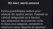 Mesajul RO-Alert primit de români