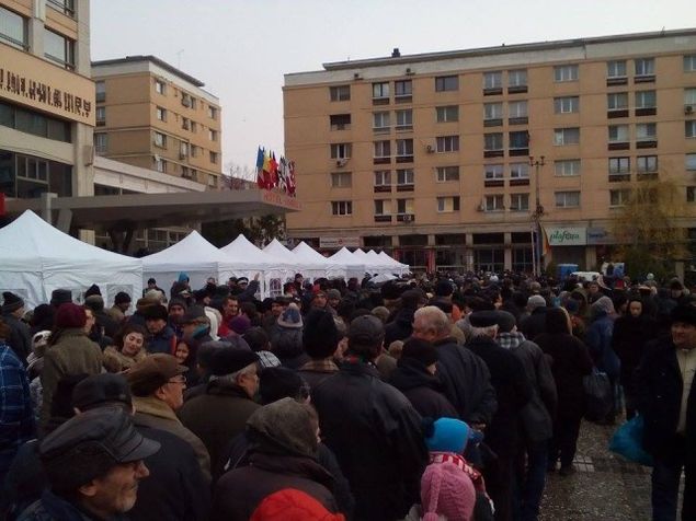 Romanii s-au imbulzit la mancare gratis! Au fost cozi imense la fasole cu carnati