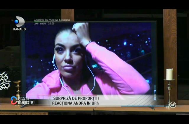 După ce Roxana Buzoiu a discutat cu Bogdan Mocanu, Jador, Ella, și alți concurenți din casa Puterea Dragostei, Andra a ieșit din emisiune și s-a dus la toaletă.
