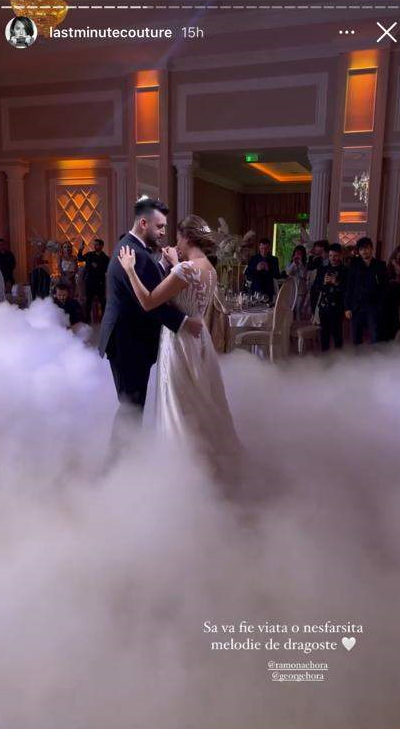 În acea seară, Instagramul a fost invadat cu imagini de la nuntă. Astfel internauții au putut fi martori la evenimentul special din viața lui George Hora. Mireasa a îmbrăcat o rochie albă, simplă, cu mâneci scurte, la gât a purtat un colier finuț, iar părul l-a prins în coc. Mirele nu s-a lăsat mai prejos și a purta un costum negru clasic și o cămașă albă, elegantă, împreună cu un paion negru.