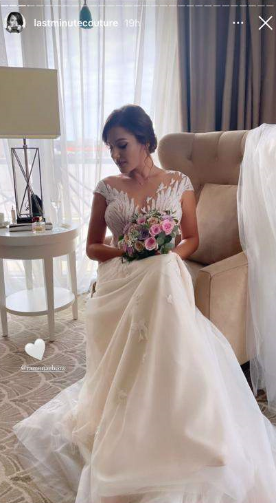 Mi-am făcut rochia la comandă, cu două săptămâni înainte. Am avut emoții, m-am uitat și pe la alte rochii de mireasă, în cazul în care nu se va putea realiza. Rochia a fost creată pe mine, era o semiformă de rochie, dar la momentul respectiv mi-a fost strânsă pe mine.", a mai povestit vedeta, în cadrul emsiunii amintite.