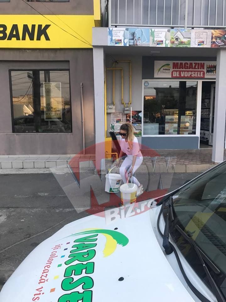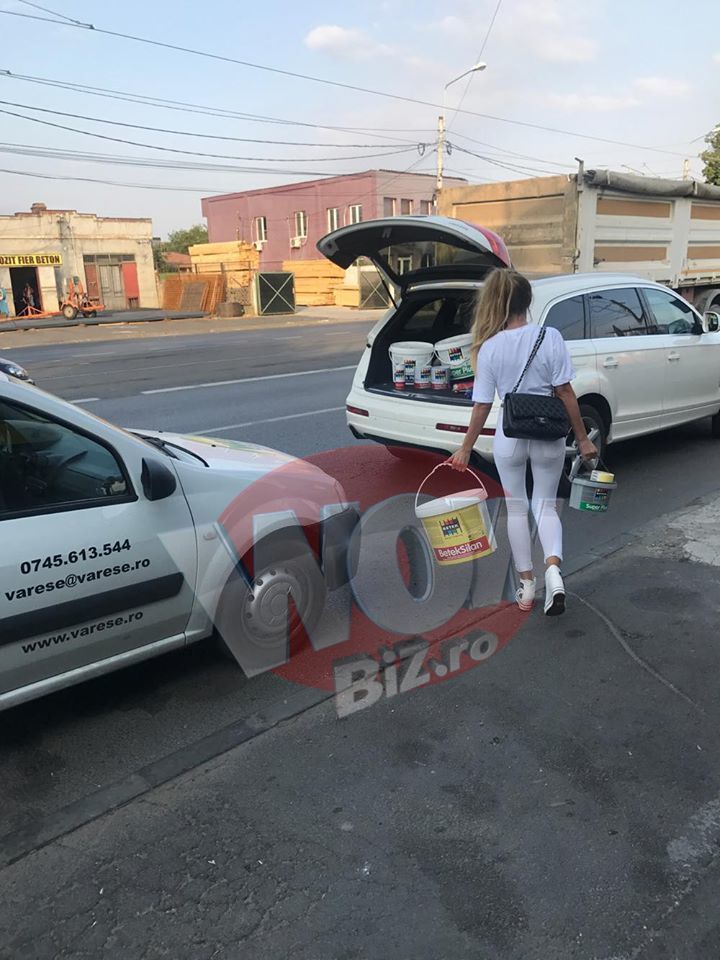 Roxana a fost surprinsa, zilele trecute, iesind dintr-un magazin de vopsele. Blondina s-a dus chitita sa ia cativa litri de vopsea.( Vezi AICI ce si-a facut Roxana la estetician, recent)