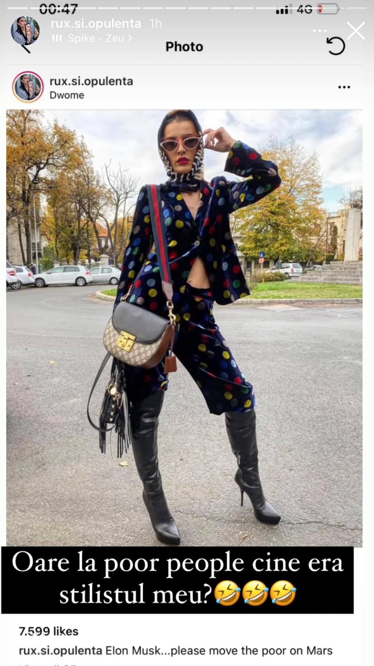 După toate vorbele aruncate în vântă, Ruxi a făcut și câteva postări în mediul online, referitoare la faptul că ar avea stilist, așa cum susțin câteva colege de-ale ei din competiție.