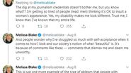 Melissa, obișnuită de ani buni cu privirile ciudate ale oamenilor, nu a lăsat ca aceste comentarii să o doboare. Mai mult, replica ei a venit însoțită de 3 selfie-uri: "La ultimă repriză de glume răutăcioase la adresa mea, oamenii mi-au spus că ar trebui să fiu bannată de pe Twitter dacă mai postez fotografii cu mine, pe motiv că sunt prea urâtă.