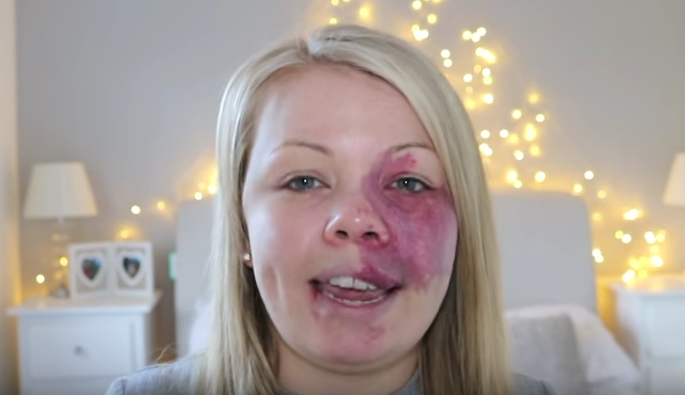 Amy Elsegood, in varsta de 24 de ani, s-a nascut cu un semn imens pe fata. Din cauza prietenilor care radeau de ea si care ii puneau diverse porecle, blondina a inceput sa se machieze de la varsta de 11 ani.