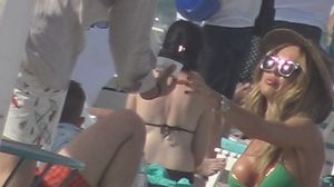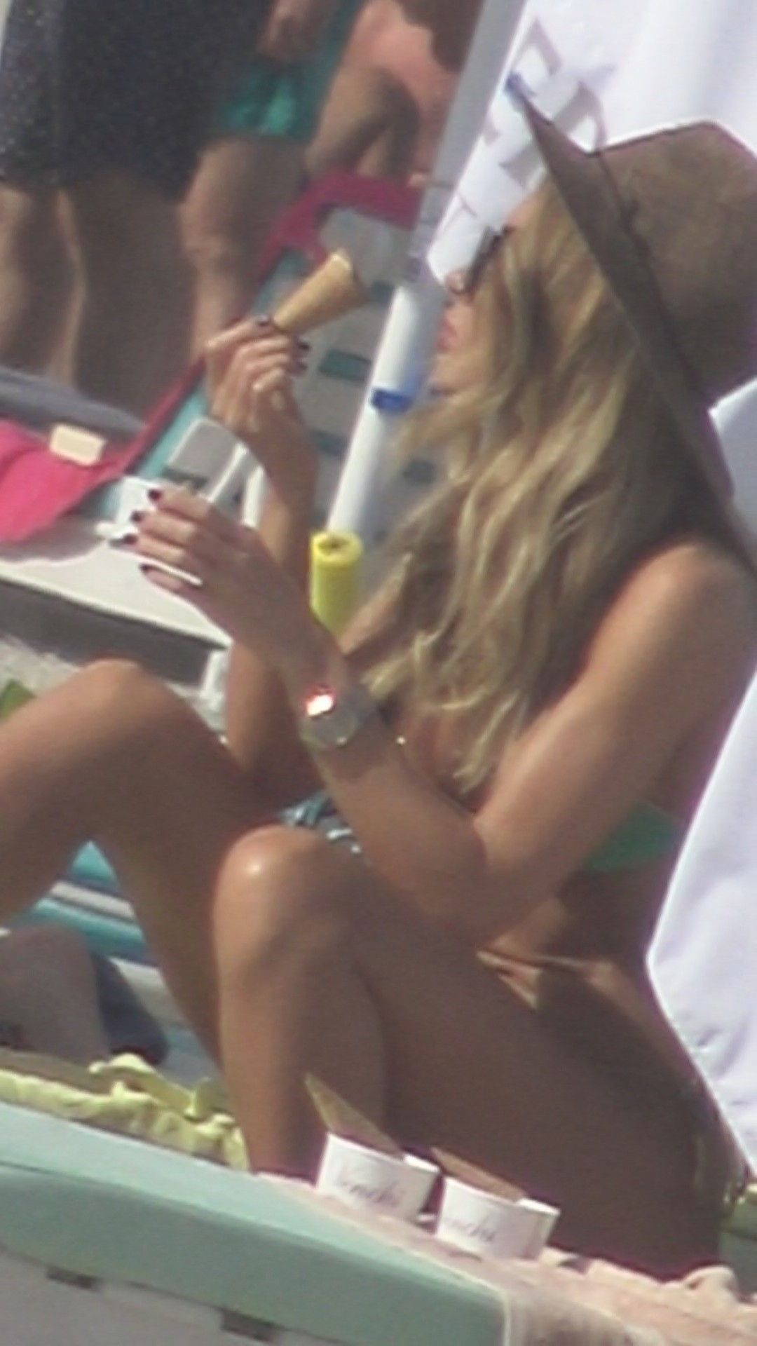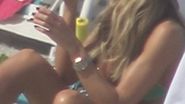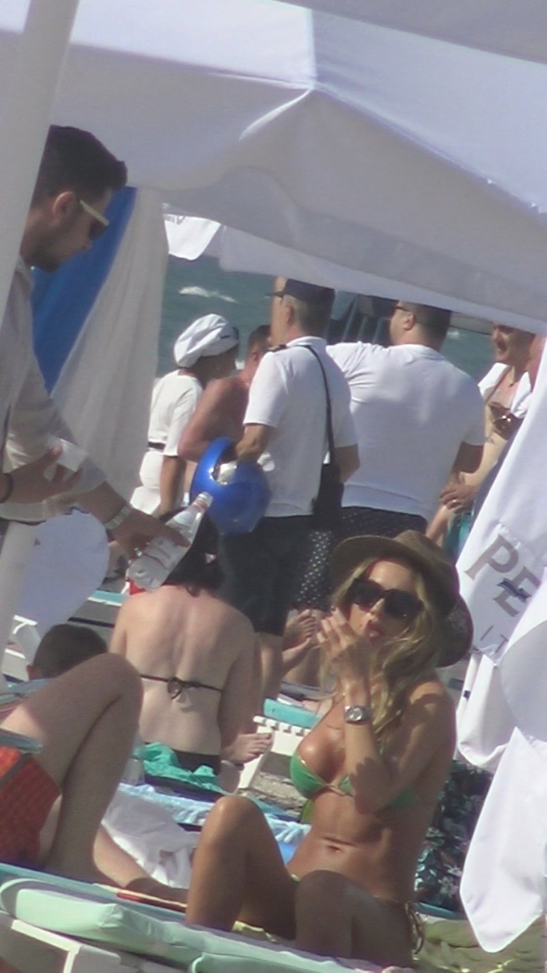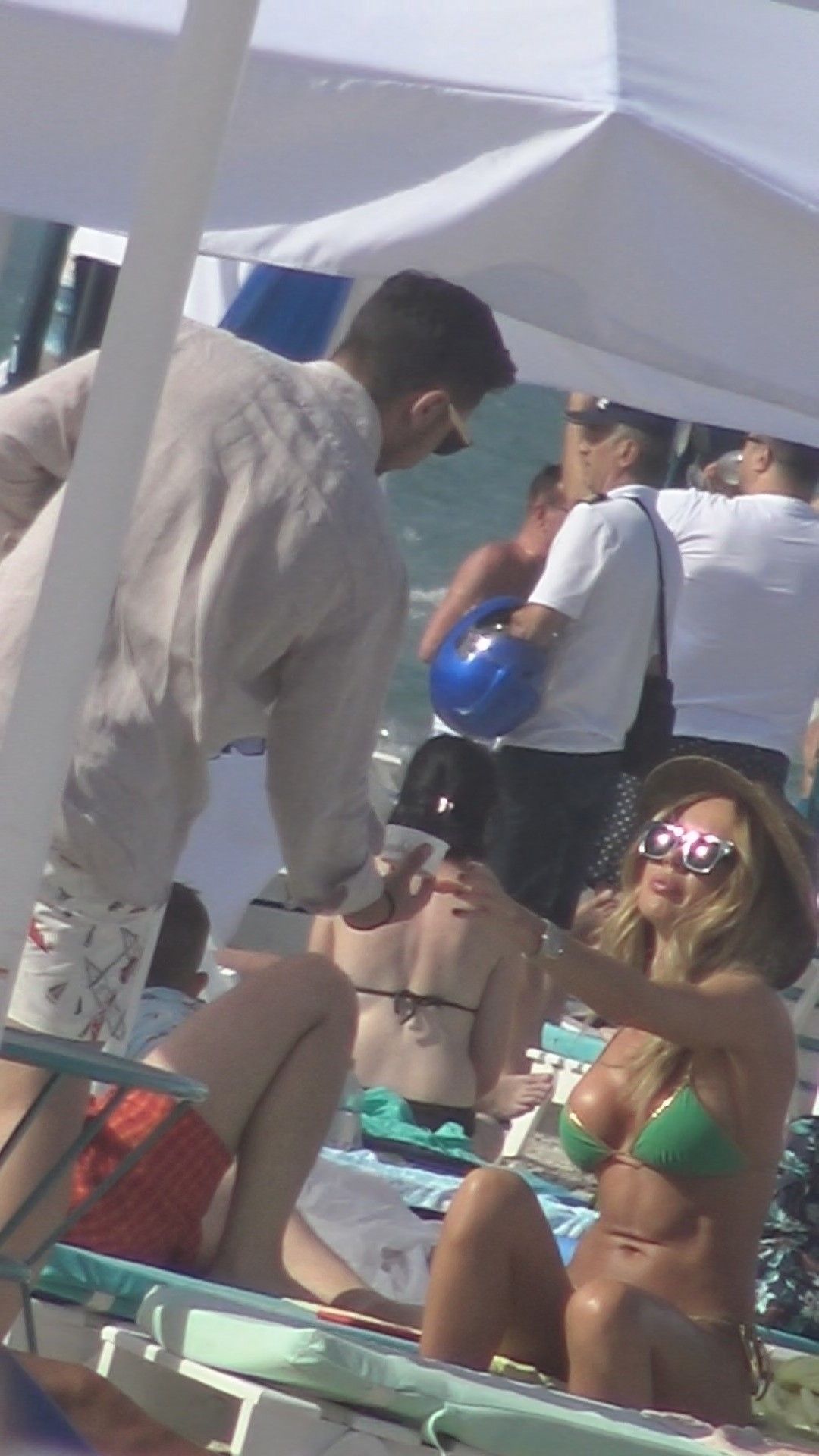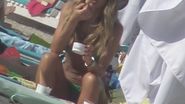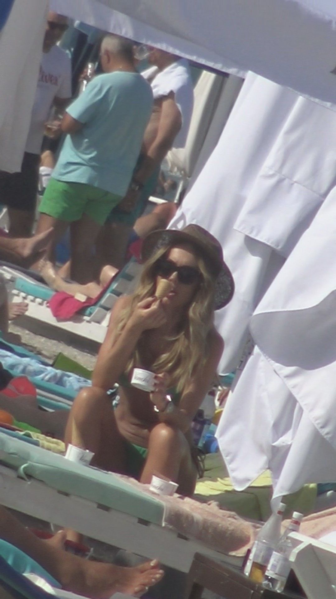 Cat a stat la plaja, Monica a atras toate privirile, mai ales in momentul in care si-a comandat niste inghetata la cornet, pe care a inceput s-o linga tacticos, chiar in fata iubitului ei.
