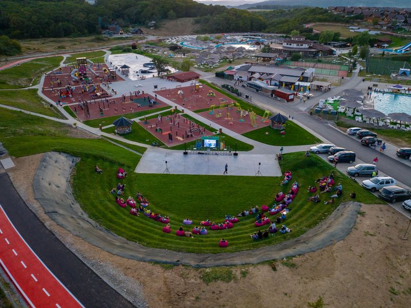 Centrul sportiv și spațiul de joacă rivalizează, în preferințele tinerilor, cu cel mai lung tobogan din țară și cu ochiurile de apă, parcă nesfârșite, îmbrățișate de plaje cu nisip ori petice de verdeață.