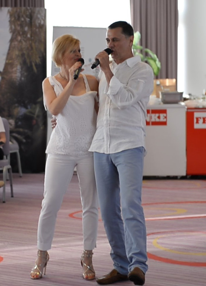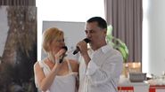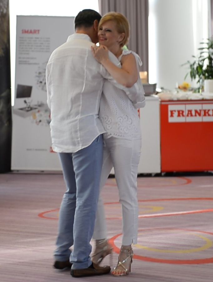 Invitati marti seara la un eveniment monden, Sanda Ladosi si Bogdan Stanoevici au oferit celor prezenti o surpriza neasteptata, interpretand impreuna o piesa muzicala in duet.