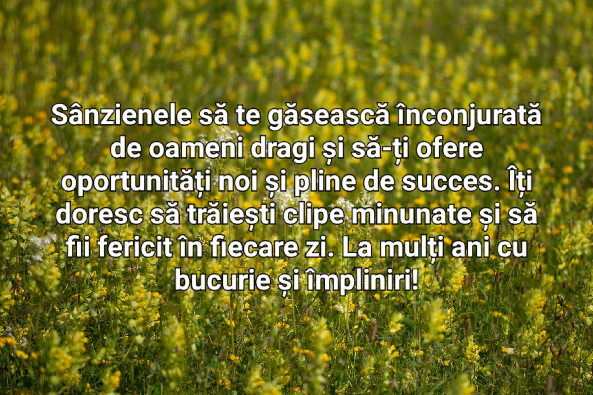 - De Sânziene, razele soarelui să aducă belșugul și norocul în casa ta! Îți doresc să fii sănătoasă, iubită și fericită!