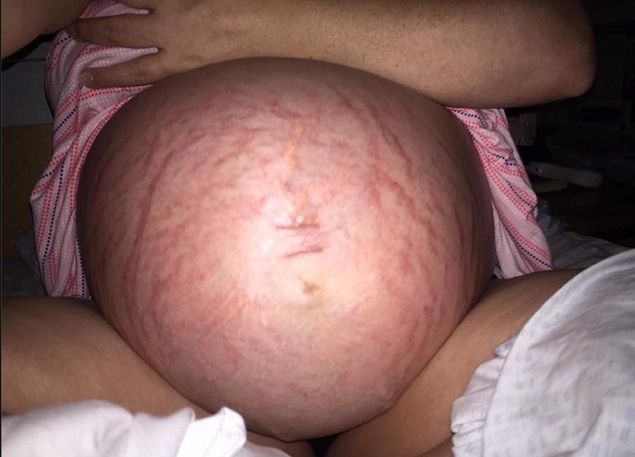 Sarcina nu a fost una usoara, mai ales ca uterul femeii a fost nevoit sa se extinda atat de tare, incat pe piele au inceput sa ii apara vergeturi extrem de adanci.