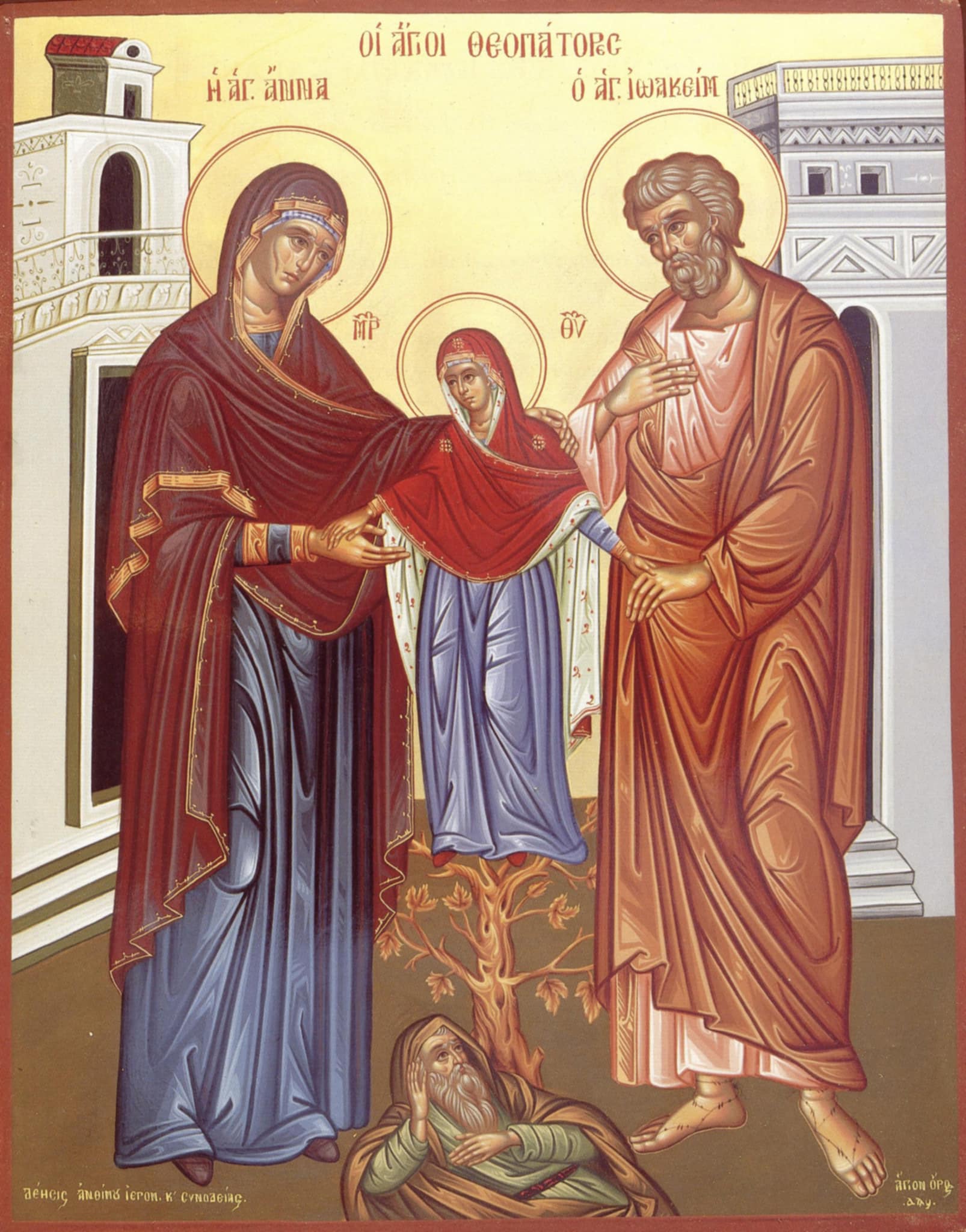 Din cea din care a ieşit neamului omenesc călcarea poruncii, din aceea au înflorit îndreptarea şi nestricăciunea; Născătoarea de Dumnezeu este adusă astăzi în Casa lui Dumnezeu.