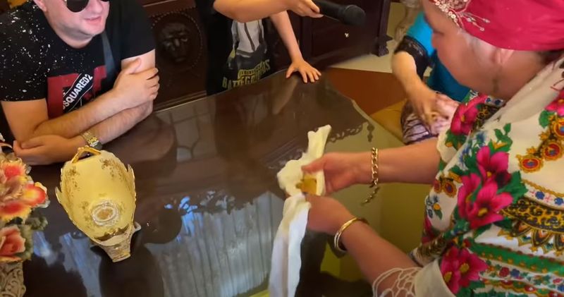 Iar scandalul a pornit imediat, cu atât mai mult cu cât lână Leo de la Strehaia era fosta lui soție, Anca. Care, culmea, a primit cei câțiva cocoșei de aur, vreo 10, în ciuda eforturilor lui Leo de la Strehaia de a-i primi el. ”Nu îi da, că se duce la femei. Eu îi dau la copii”, a spus Anca de la Strehaia și i-a primit în mână, înveliți într-o pânză albă.
