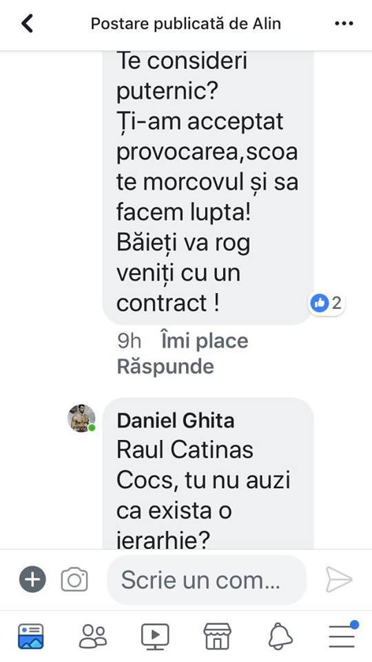 Mai mult, si pe adresa lui de socializare, Ghita a aruncat manusa, si nu numai lui Morosanu, ci si altor luptatori aflati pe val. “Toţi marii “campioni “ai României sa vină in ring sa lupte cu mine: Pauza... nu-i aud şi nu-i văd decât la emisiuni TV, unde sunt toţi “ campionii K1””, a spus Ghita!