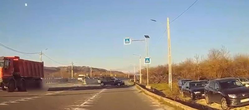 Momentul accidentului teribil a fost surprins de o cameră de bord, iar pe imagini se poate observa cum basculanta, care mergea pe prima bandă, a schimbat direcția brusc și a intrat pe cea de-a doua, lovind puternic un autoturism care era oprit regulamentar.