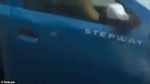 Scenele erotice au fost surprinse pe autostradă de un motociclist care a observat că un șofer nu reușește să țină direcția.