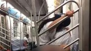 Cei doi tineri, acoperiți unul de celălalt, pentru a fi greu de identificat, au făcut amor sălbatic în văzul tuturor- ea, pe el, ținându-se de bara din metal din metrou, iar el, în șezutul scaunului, oferindu-i plăcere partenerei sale.