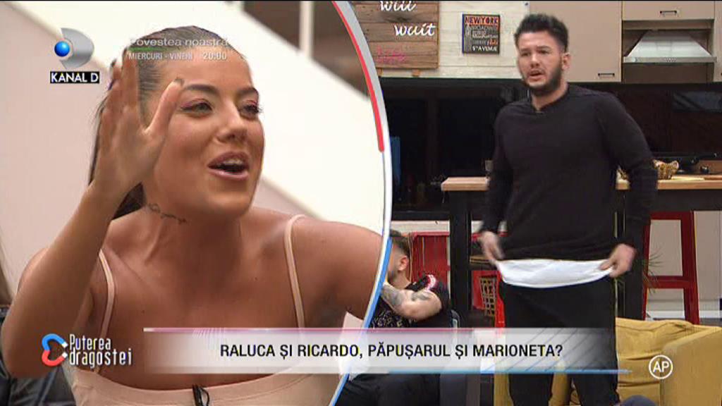 Raluca și Ricardo s-au luat la ceartă cu Roxana. Ea i-a acuzat pe cei doi iubiți că respectă un scenariu stabili dinainte, iar cea care ia deciziile ar fi Raluca. Ricardo s-a enervat și, fără să-și dea seama ce face, a vrut să-și dea jos pantalonii. Andreea Mantea a fost siderată! Imediat, a început să țipe la Ricardo, să-l certe și l-a rugat să plece din casă.