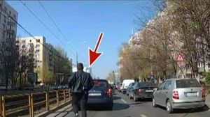 Scene incredibile suprinse in traficul bucurestean. Un sofer l-a snopit pur si simplu in bataie pe un alt conducator auto. Victima nici n-a avut timp sa se dezmeticeasca. Va avertizam ca urmeaza imagini care va pot afecta emotional!