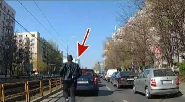 Isi continua drumul, semnalizeaza regulamentar, si trece pe banda din dreapta. Franeaza cand intra iar in coloana si se opreste. Traficul se blocheaza brusc! pe ambele benzi se face coada.Moment pe care soferul din masina alba pare ca abia il astepta.Acesta iese din masina sa si se indreapta glont spre soferu care i-a taiat calea.