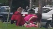Mai mult decât atât, tinerii par să fie lipsiți de inhibiții și își continuă ”treaba” în văzul tuturor. Îmbrăcați amândoi în roșu, au ”aprins” focul pasiunii pe iarbă, la periferia părculețului, fără să aibă nicio jenă că cineva i-ar putea vedea, filma și chiar amenda.
