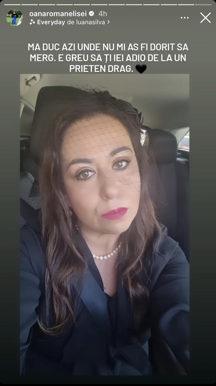 „Mă duc astăzi unde nu mi-aș fi dorit să merg. E greu să-ți iei adio de la un prieten drag”, a scris Oana Roman pe InstaStory, alături de o fotografie în care părea extrem de tristă.