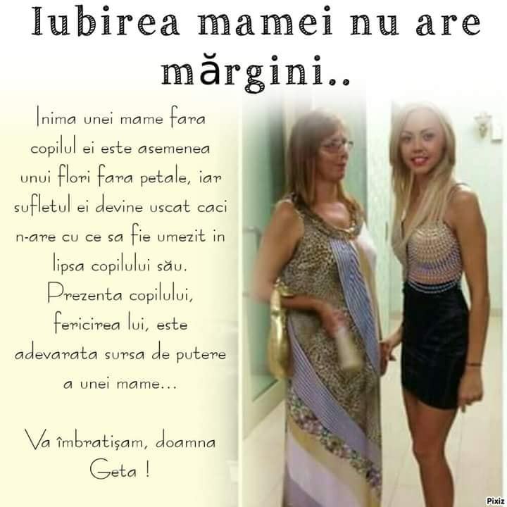 “Inima unei mame fara copilul ei este asemenea unei flori fara petale, iar sufletul ei devine uscat caci nu are cu ce sa fie umezit in lipsa copilului sau. Prezenta copilului, fericirea lui este adevara sursa de putere a unei mame. Va imbratisam, doamna Geta”, sunt cuvintele expuse intr-o scrisoare ce a circulat in aceasta perioada printre cei care au iubit-o pe vedeta muzicii de petrecere, la care s-a adaugat si o imagine cu Denisa si femeia care i-a dat viata!