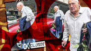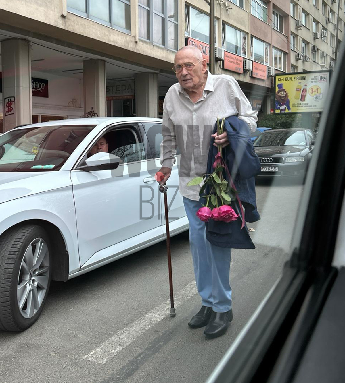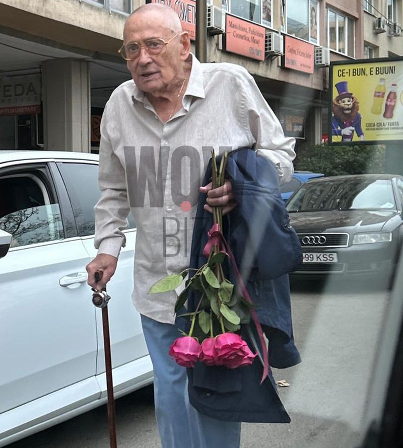 Se vede că se apropie de 90 de ani! Horia Moculescu merge greu, în baston și cu flori în mână. Imagini nemaivăzute cu celebrul pianist | EXCLUSIV
