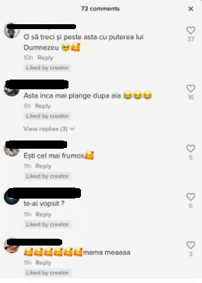 Se poate înțelege că prin gestul neașteptat al lui Sebastian, de a aprecia comentariul respectiv, acesta i-a dat dreptate tânărului, care i-a lăsat mesajul la videoclipul cu pricina. ”O să treci și peste asta cu puterea lui Dumnezeu/ Ești frumos/ mama meaa”, au fost alte comentarii lăsate la filmulețul distribuit de Sebastian.